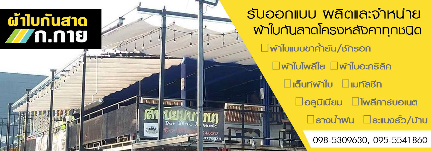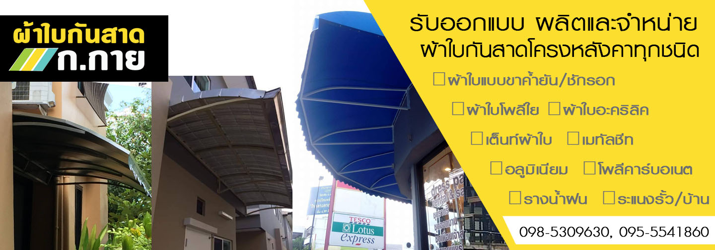 ผ้าใบกันสาด ก.กาย รับออกแบบ ผลิตและจำหน่าย ผ้าใบกันสาดโครงหลังคาทุกชนิด ยินดีให้คำปรึกษา หรือนัดดูหน้างานฟรี